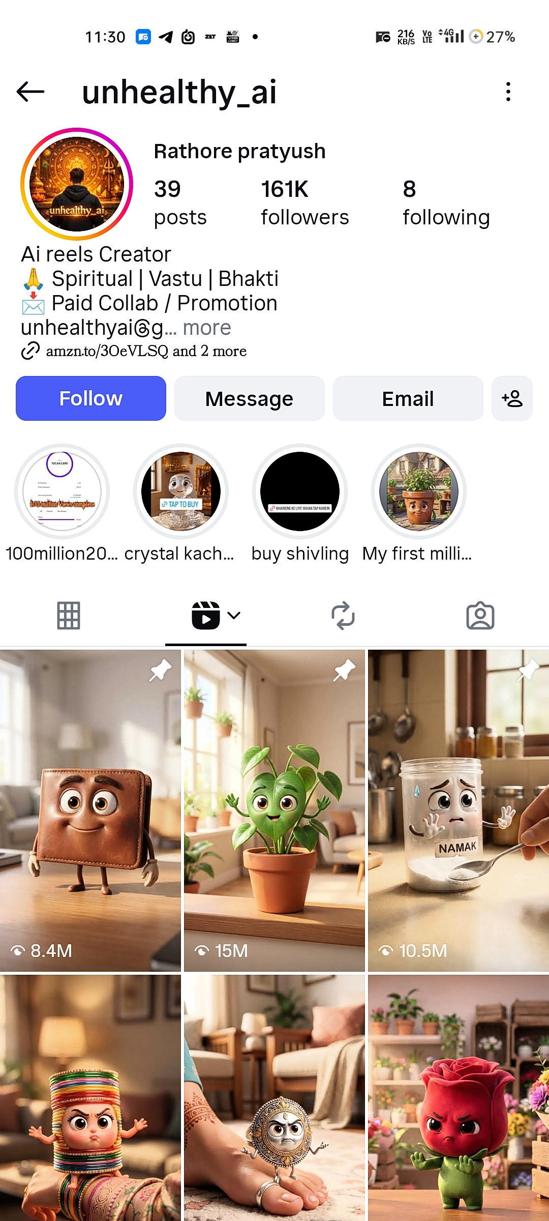 "బిగ్స్టాక్ థాంక్స్ బ్రో! నీ AI గ్లాస్ కట్టింగ్ రీల్స్ బండిల్ వల్ల నా ఇన్స్టాగ్రామ్ పేజ్ 20 రోజుల్లో మానిటైజ్ అయ్యింది, నెలకి 1.2 లక్షలు ఆర్జన. సూపర్! 🌟"